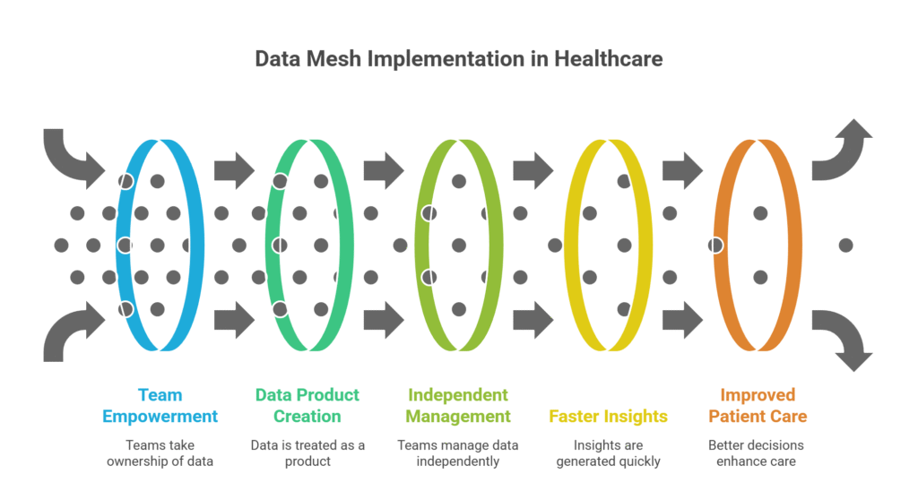 This approach creates a system where teams collaborate but stay independent. A hospital’s oncology department, for instance, can focus on cancer patient data without waiting for a central IT team to process it. This cuts delays and makes data more relevant to specific needs, like tailoring treatment plans or tracking outcomes. By giving teams ownership, data mesh fosters a responsive healthcare environment where insights drive better decisions.