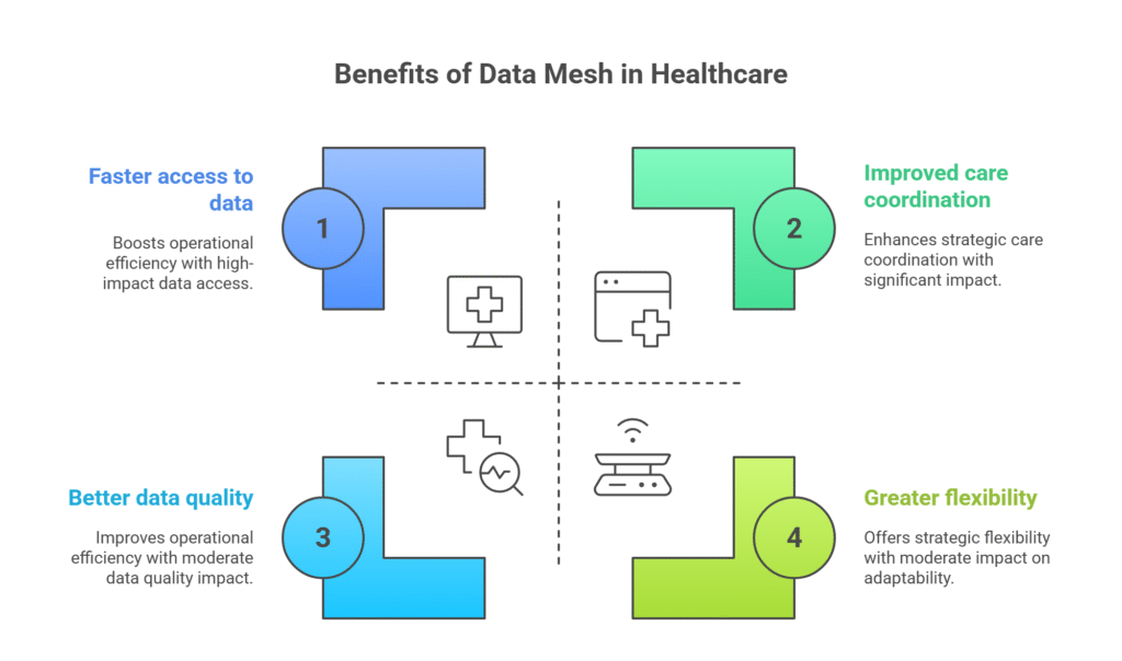 Data mesh can bring real wins for healthcare. Here are some key advantages:
