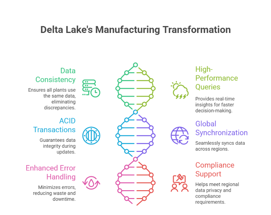 Delta Lake, built on open-source technology and championed by companies like Databricks, addresses these challenges head-on. Here’s how it transforms multi-region manufacturing: